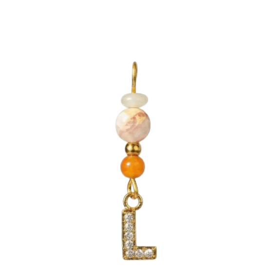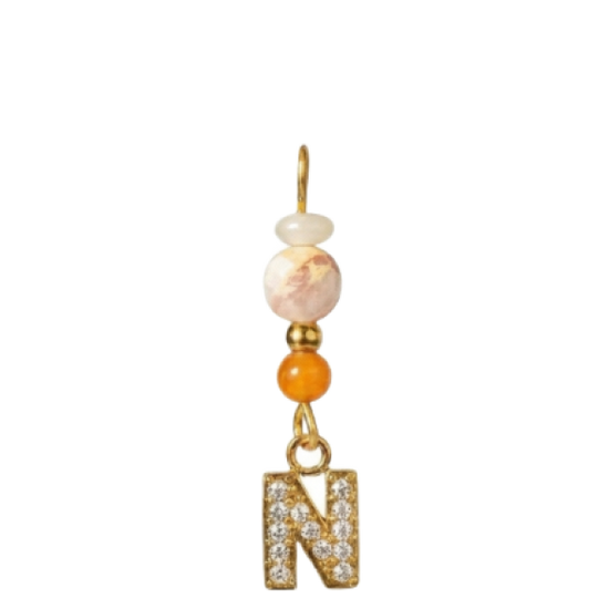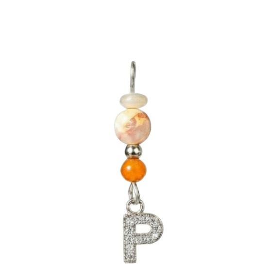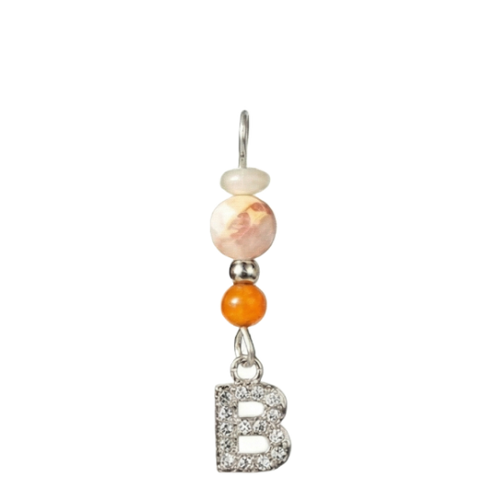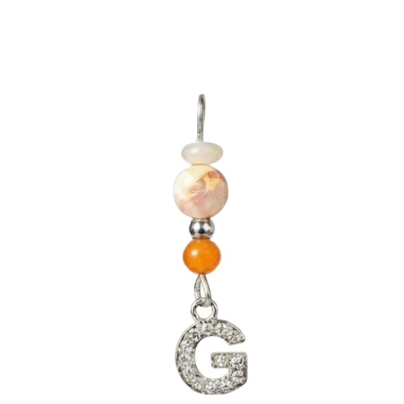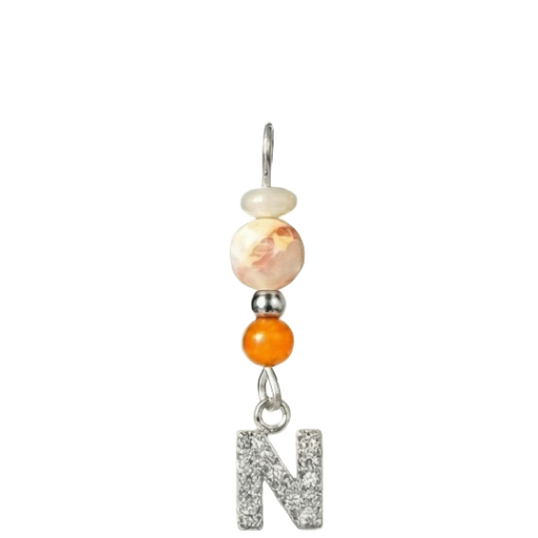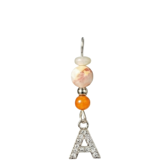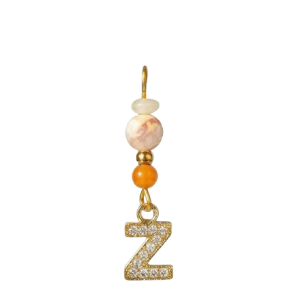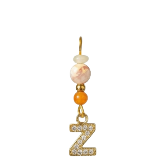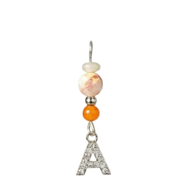 Zirkonia Buchstabe mit handmade Perlen, hergestellt in unserem Berliner Store