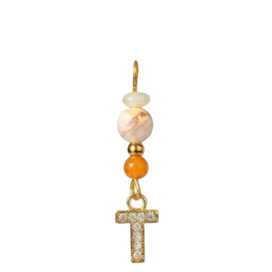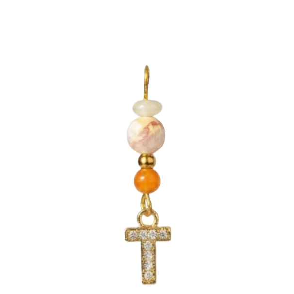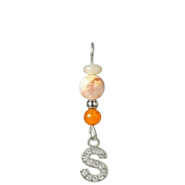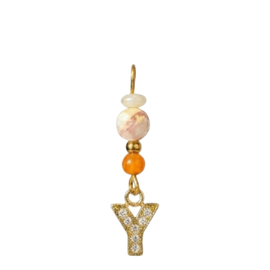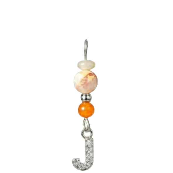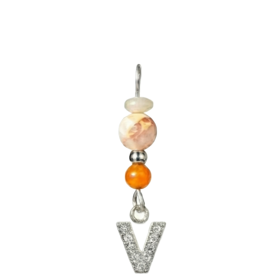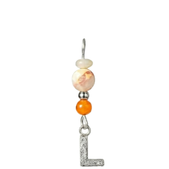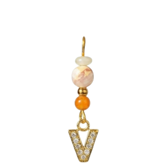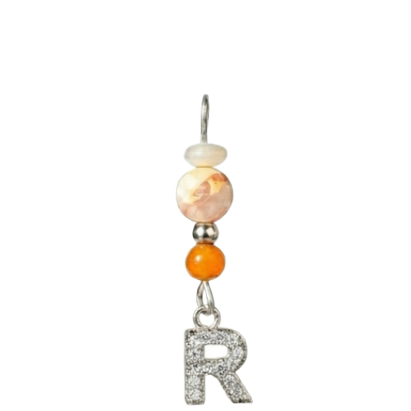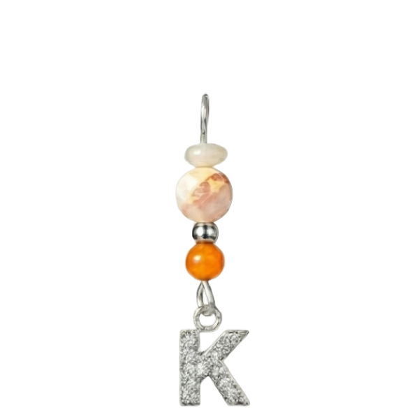Zirkonia Buchstabe mit handmade Perlen, hergestellt in unserem Berliner Store