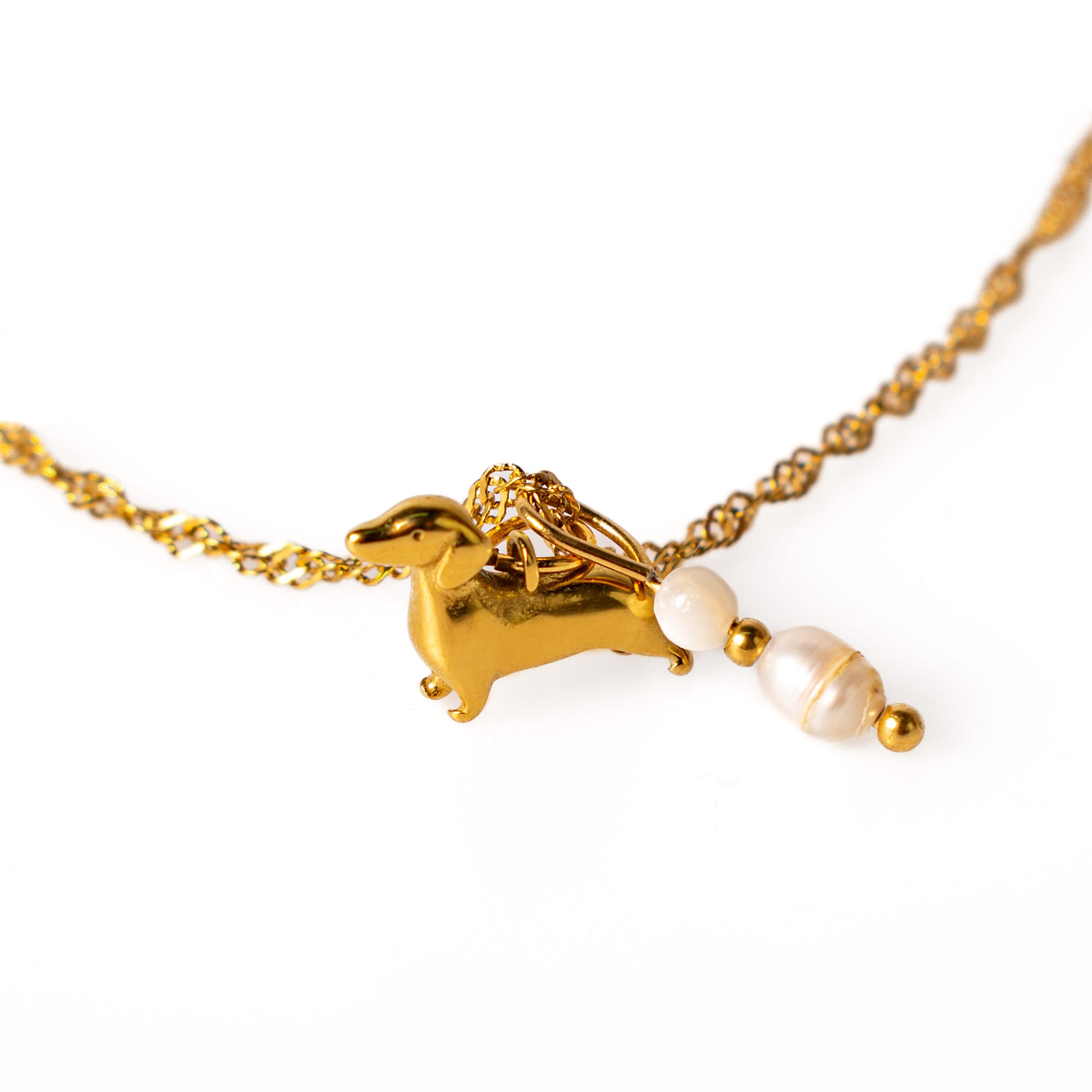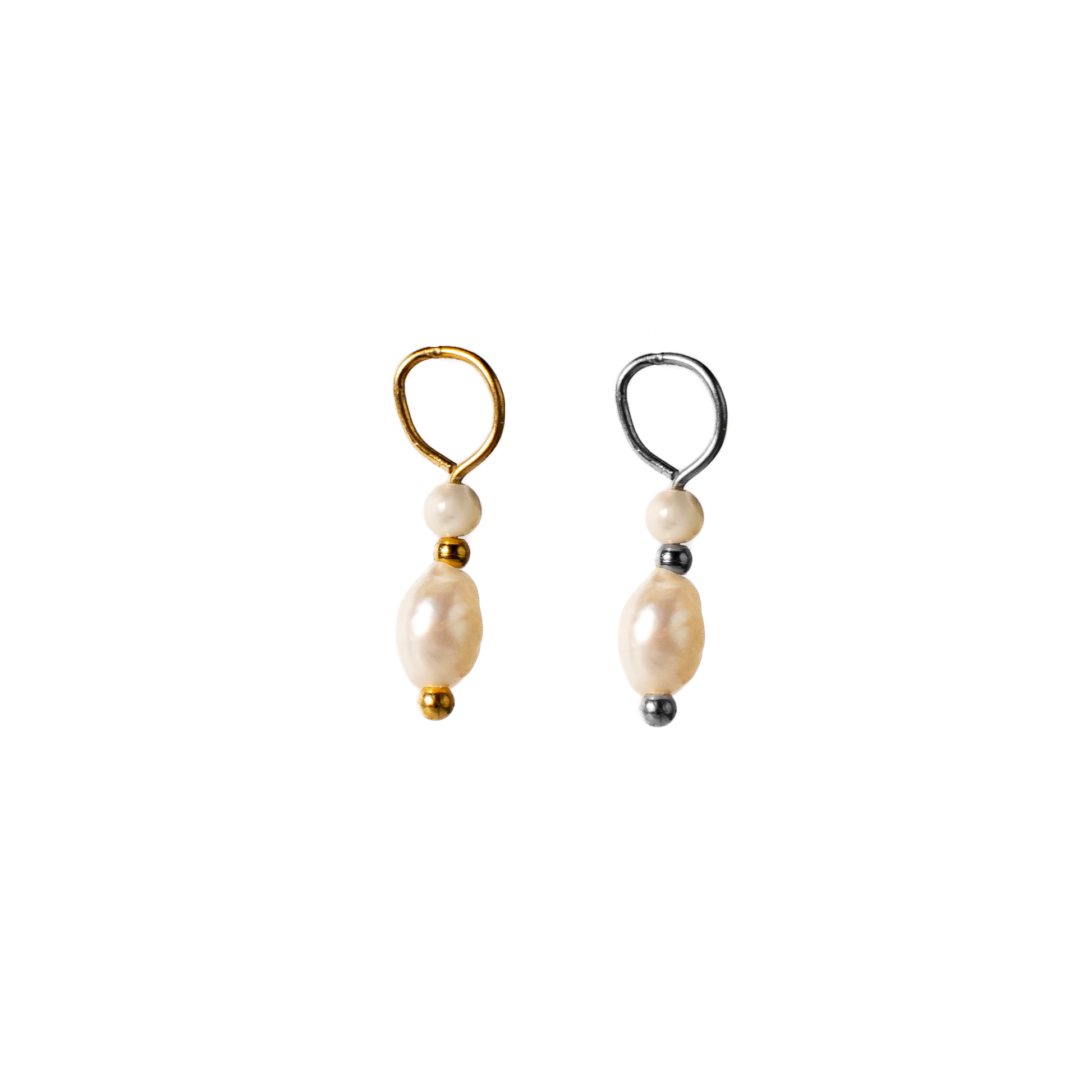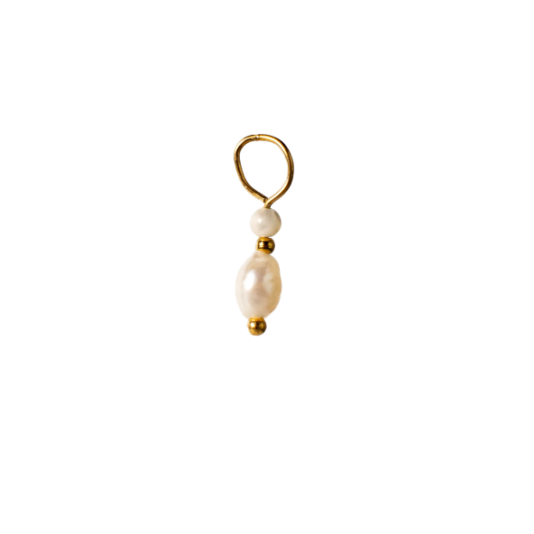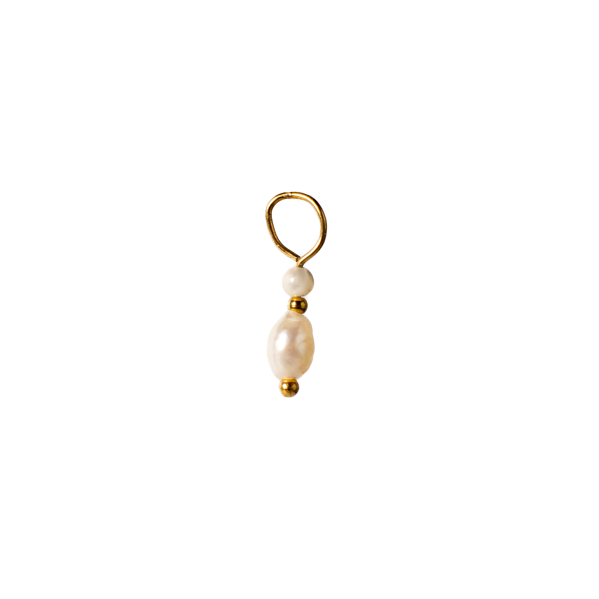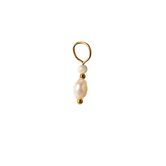 Handmade charm aus goldenen Edelstahlwerken und Süßwasserperlen, gefertigt in unserem Münsteraner Store