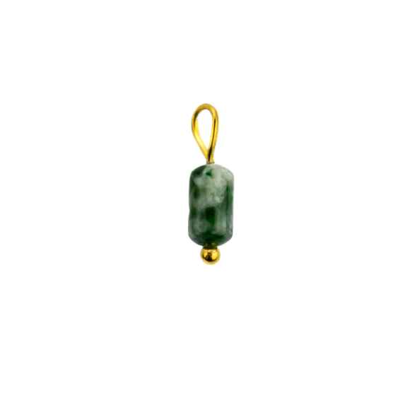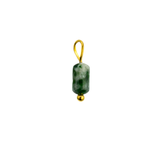 Grüner Natursteinanhänger mit vergoldeter Fassung aus Edelstahl, Handmade von uns im Store angefertigt