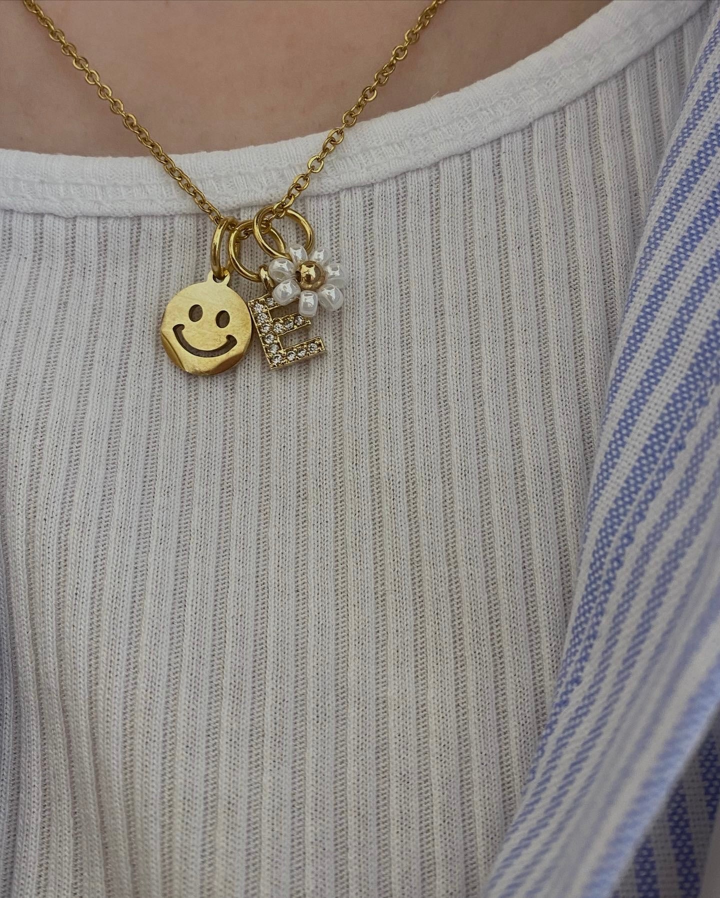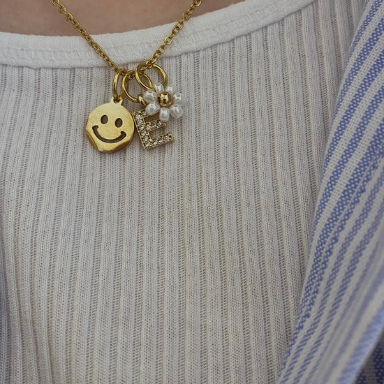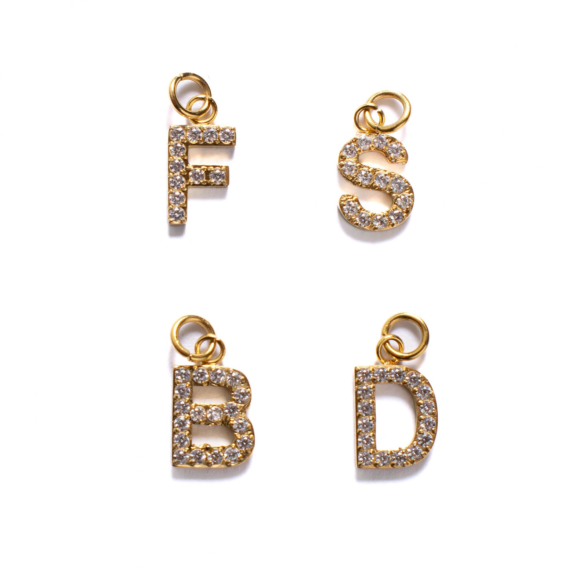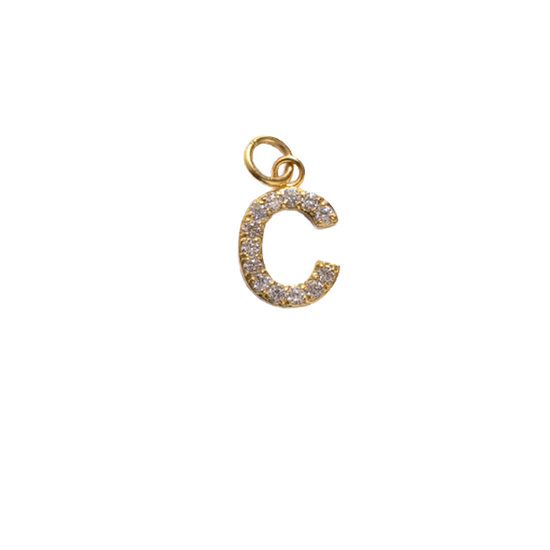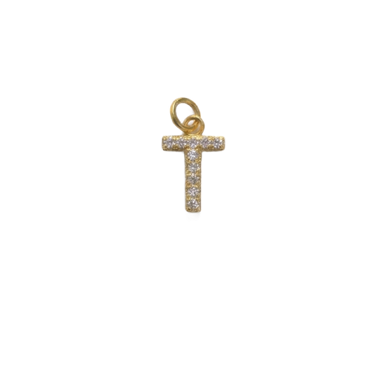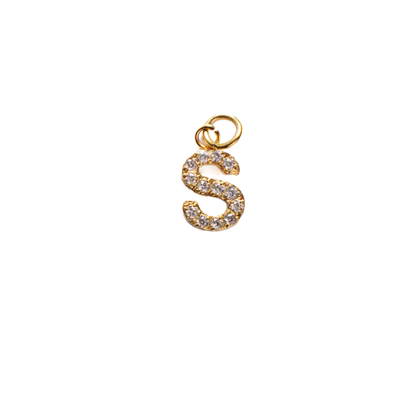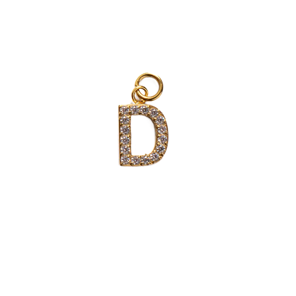 Vergoldeter Buchstabenanhänger aus Edelstahl, besetzt mit Zirkoniasteinen