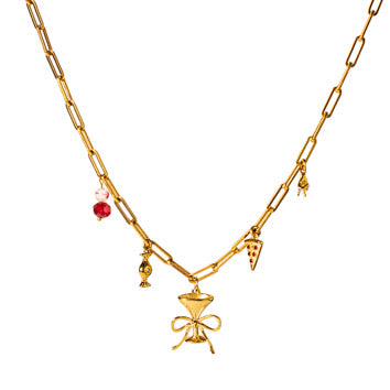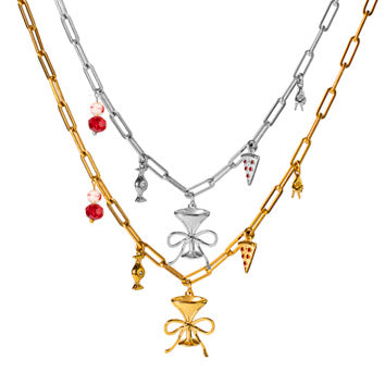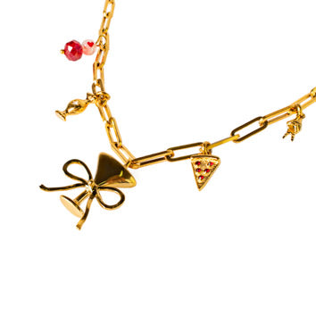 Charmkette aus vergoldetem Edelstahl mit 5 unserer Statement-anhänger. Kombinierbar mit weiteren Anhängern aus unserem Sortiment.