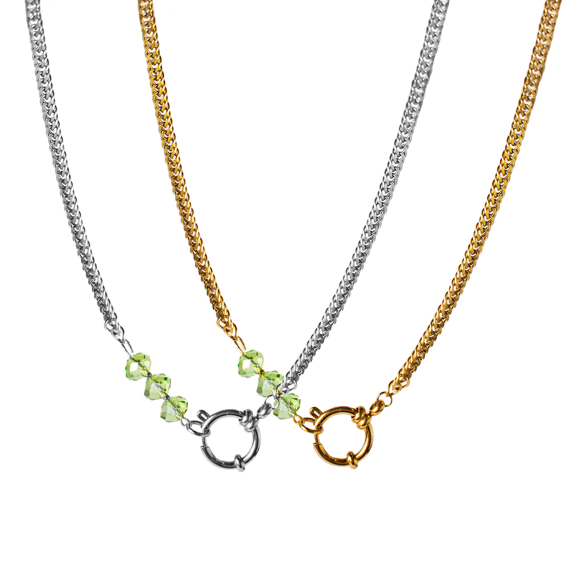 vergoldete Kette lock mit handgemachtem Einsatz aus geschliffenen Glasperlen und Verschlusswechsel