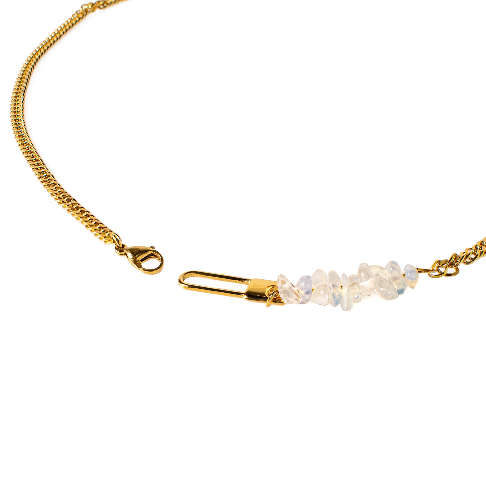 vergoldete Kette lock aus Edelstahl mit handgemachtem Natursteineinsatz ‚opal‘