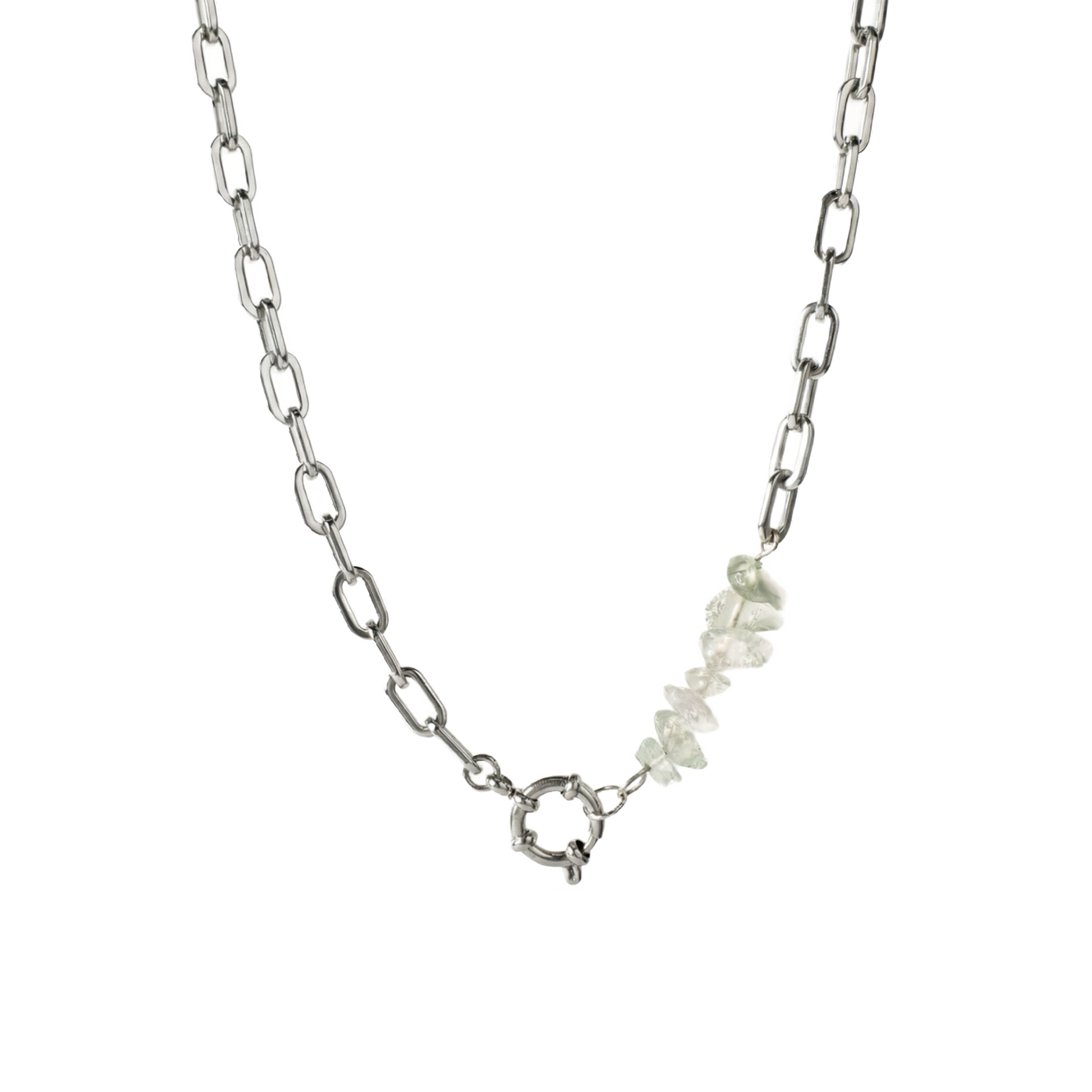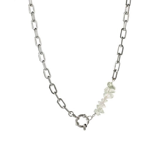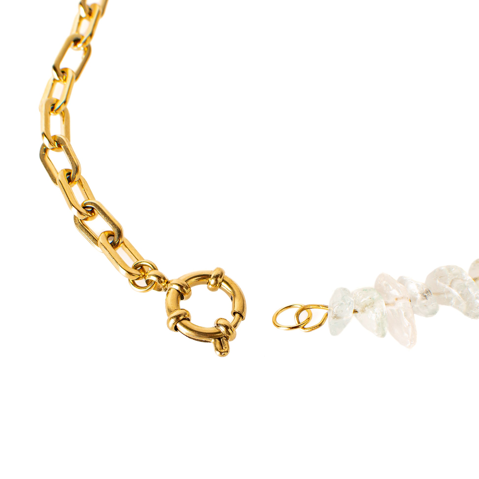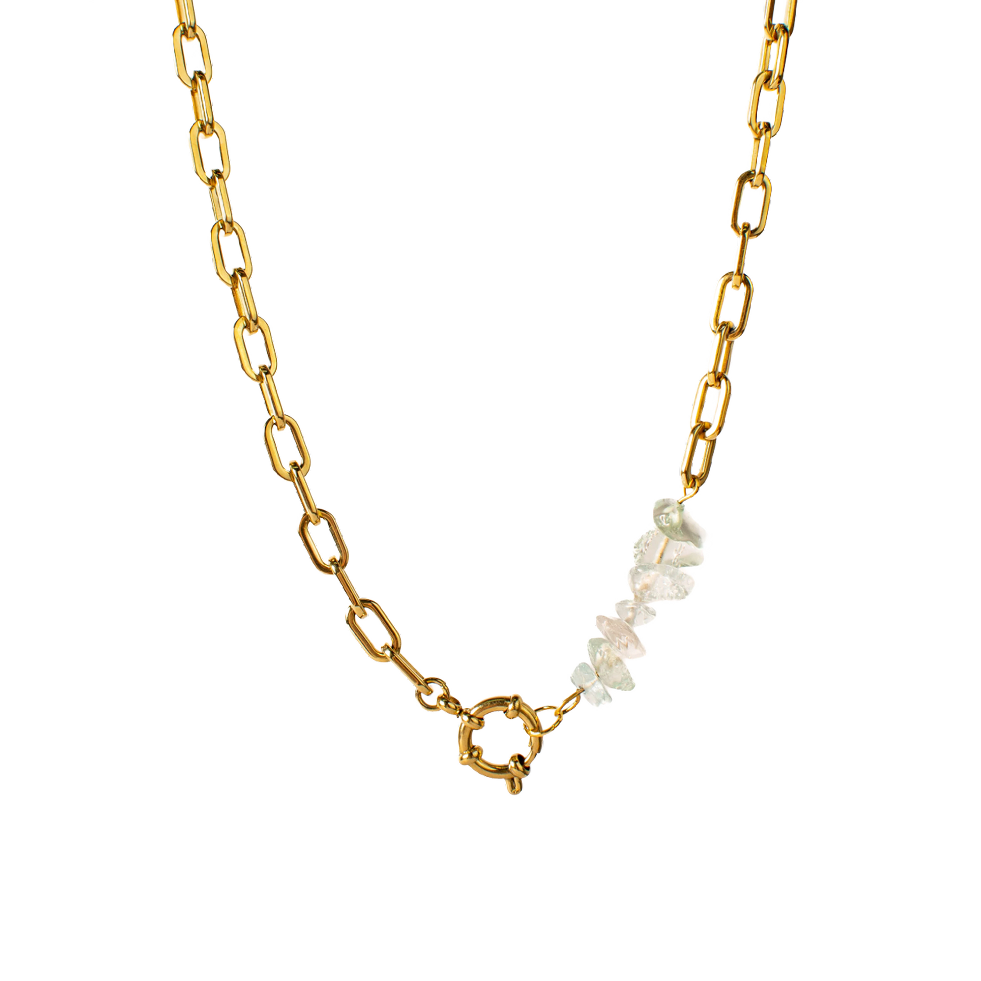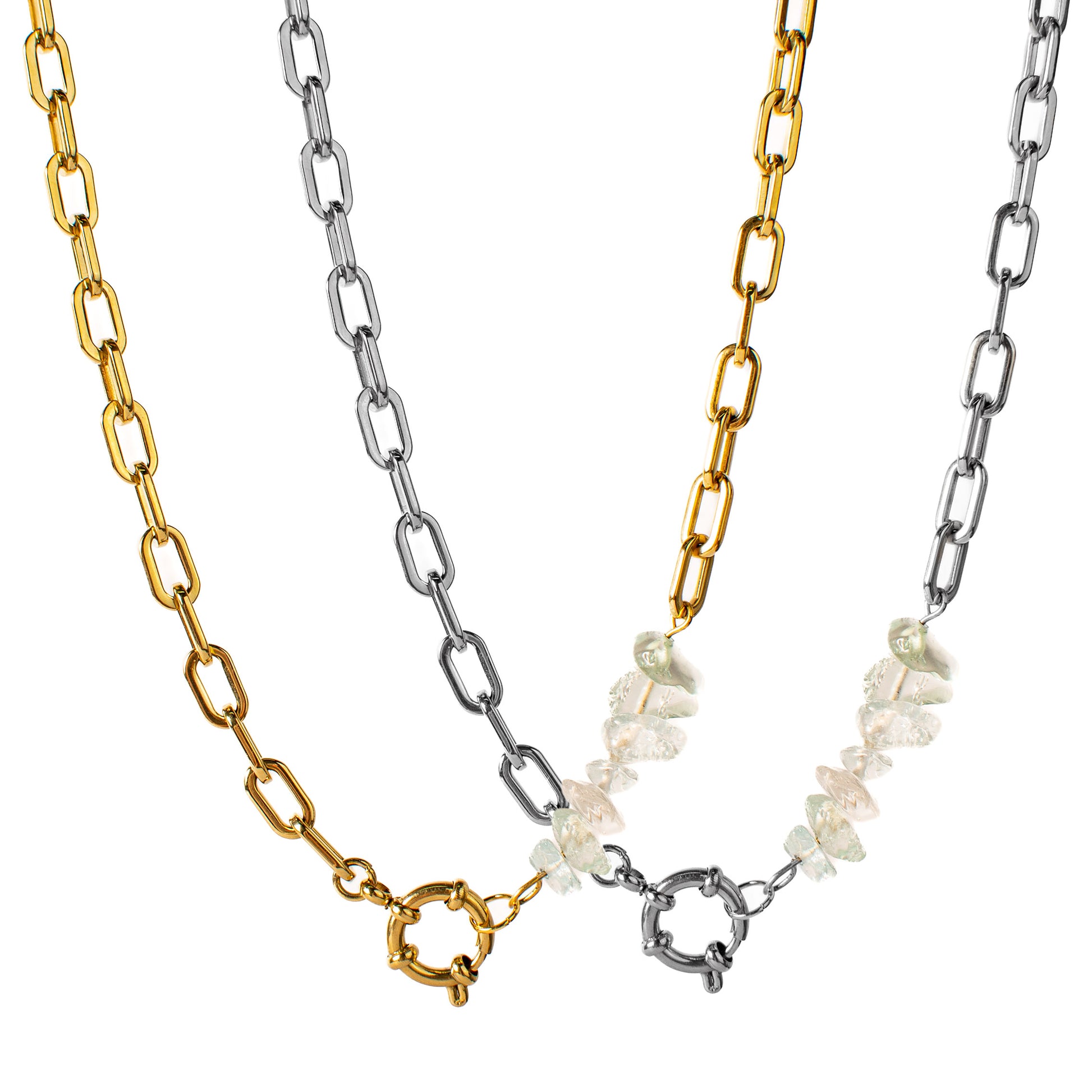vergoldete Kette square aus Edelstahl mit eingesetztem Opal-Anhänger, handmade von unseren Mitarbeiterinnen in unserem flagshipstore in Münster erstellt