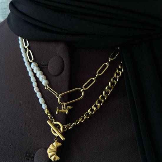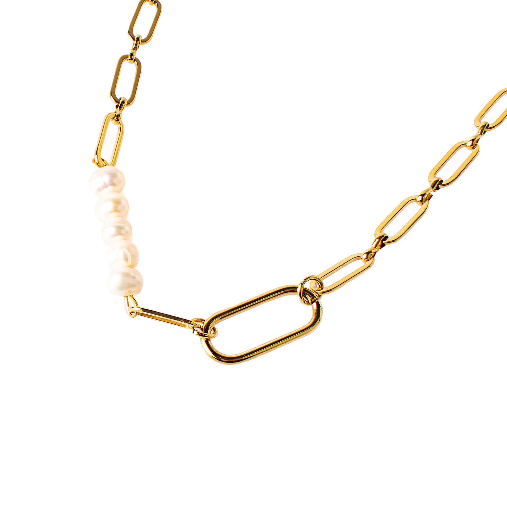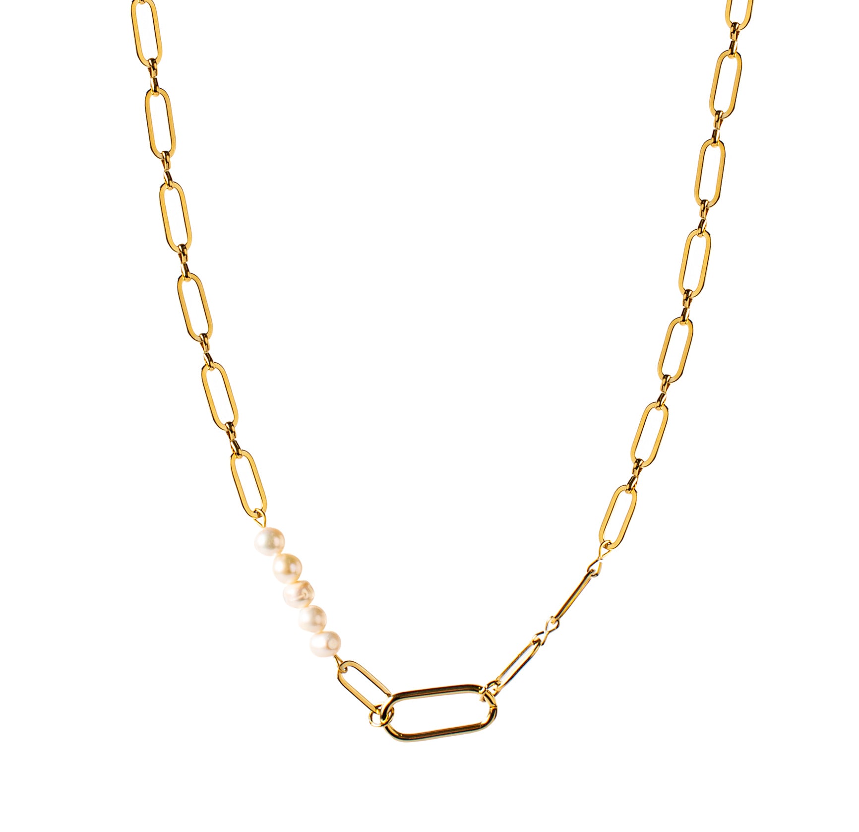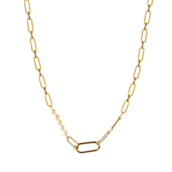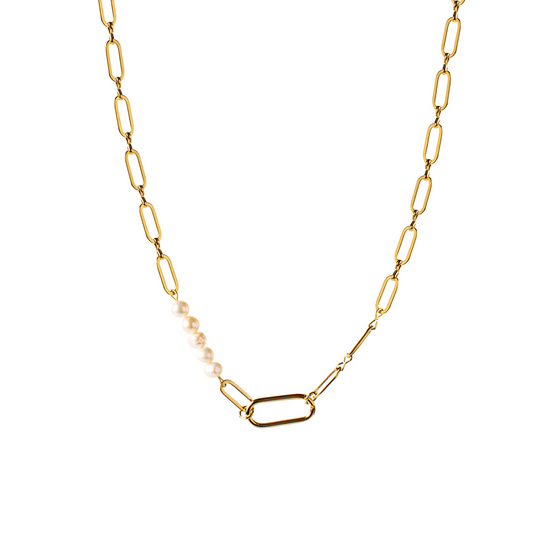 vergoldete Kette aus Edelstahl in Gold mit handgemachtem Perleneinsatz aus Süßwasserperlen