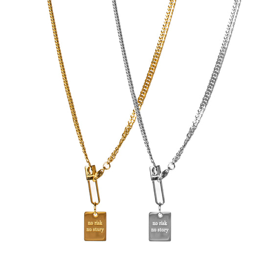 Kette lock mit einem unserer beliebtesten Necklays-Sprüchen und Necklays Logo auf Verschluss und Anhänger