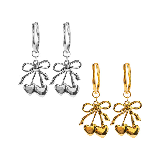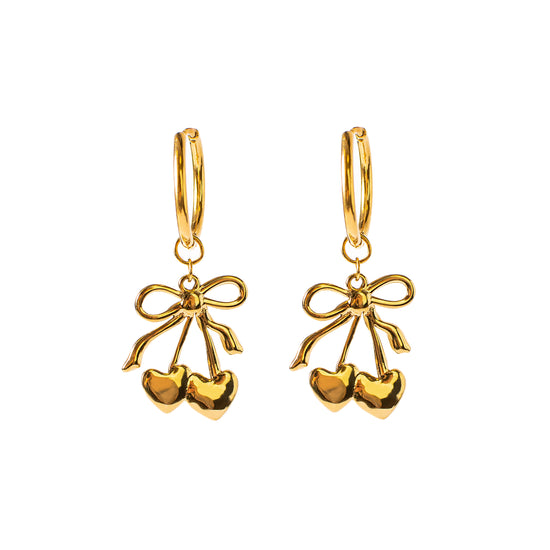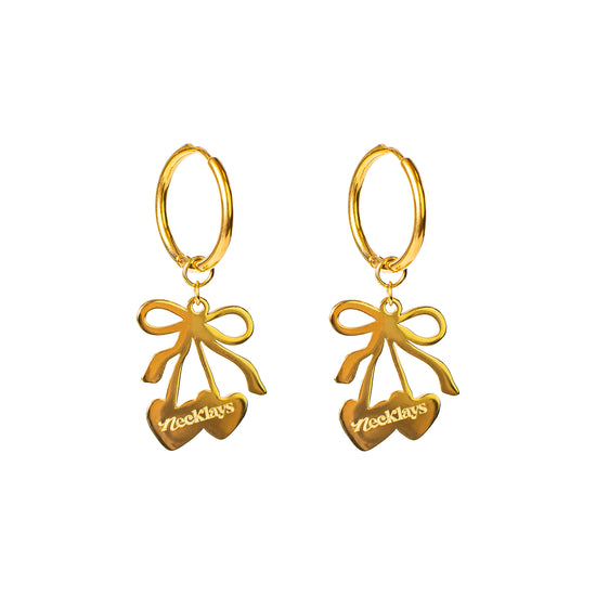 Vergoldete 20mm Creolen aus Edelstahl mit Kirschen-Anhängern aus unserer neuen Kollektion