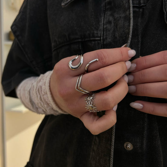Dieser elegante Ring in V-Form überzeugt mit seinem modernen Chevron-Design und verleiht jedem Outfit eine stilvolle, minimalistische Note. Die klare, zeitlose Form macht ihn perfekt für den Alltag – ob einzeln getragen als dezentes Statement oder kombiniert mit anderen Ringen im angesagten Layering-Look.