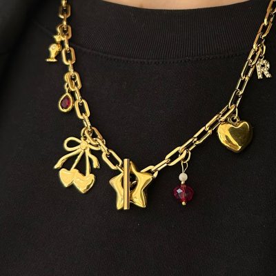 vergoldeter Anhänger aus Edelstahl mit eingefasstem geschliffenen Glasstein