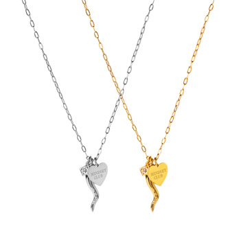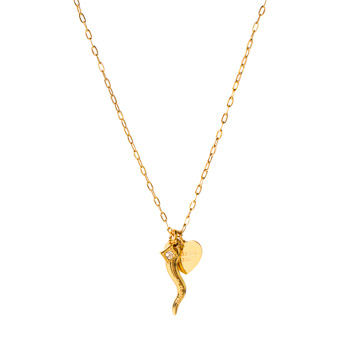 vergoldete Kette hanging low aus Edelstahl mit Anhänger ‚diamond‘,’chili‘ und ‚Mindset club‘