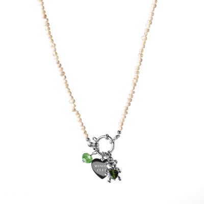 Kette white stone mit unseren beliebten Anhängern Mindset Club, bear with me und handgemachter grüner geschliffener Glasperle