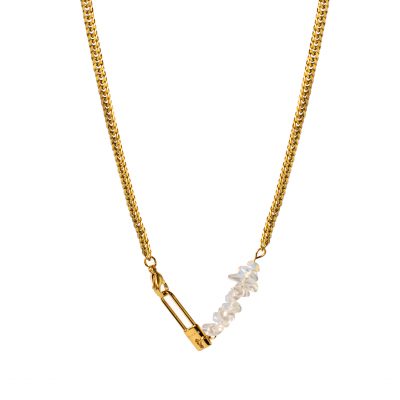 vergoldete Kette lock aus Edelstahl mit handgemachtem Natursteineinsatz ‚opal‘