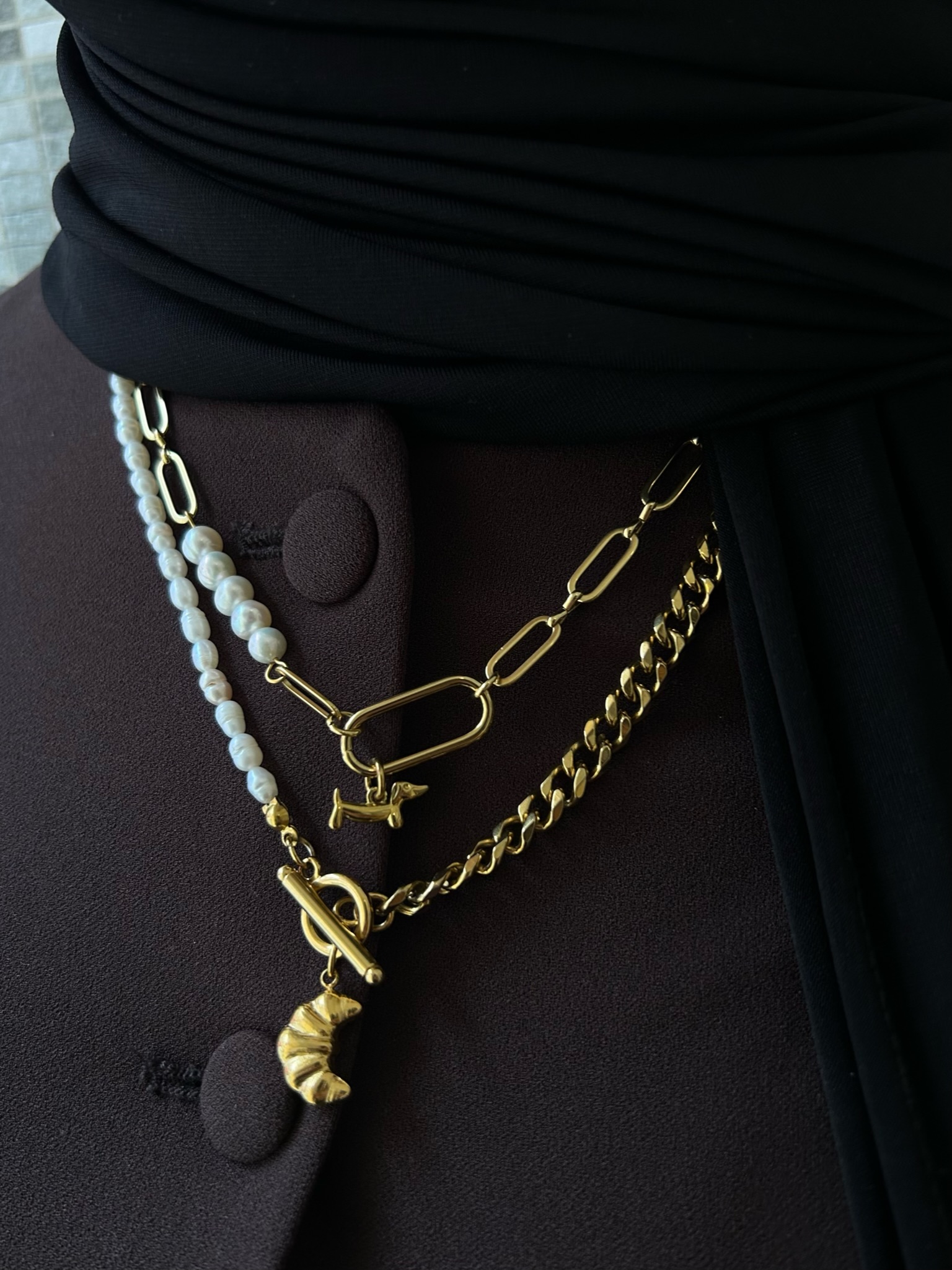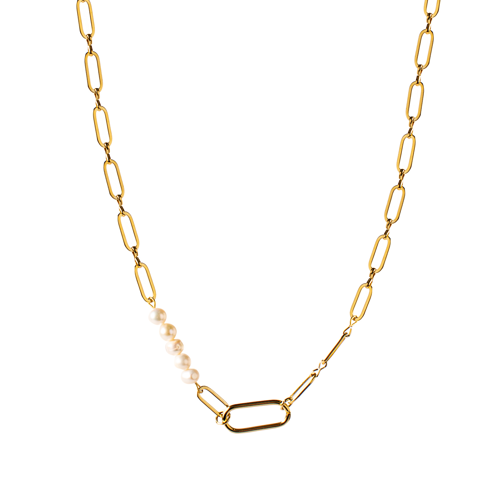 vergoldete Kette aus Edelstahl in Gold mit handgemachtem Perleneinsatz aus Süßwasserperlen